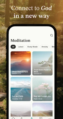 • Immerse yourself in Bible scripture with guided meditations designed to help you relax and reflect.