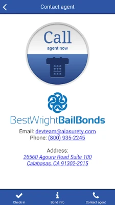 The check my bail app connects you with your bail bond agency. It allows you to complete required check-ins. With one click you will be connected to your bail bond agency. It also gives you your next court date and directions to the court.