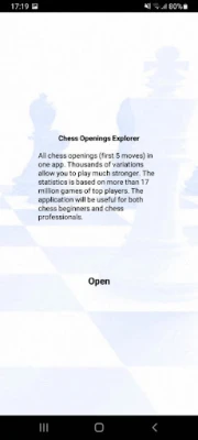 All chess openings (first 5 moves) in one app. Thousands of variations allow you to play much stronger. The statistics is based on more than 17 million games of top players.