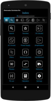Electronics Calculator Pro is a utility application consisting of various calculators, conversions, reference tables, pin outs and basic pocket calculator.