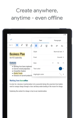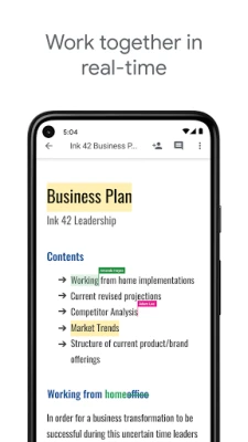 Create, edit, and collaborate with others on documents from your Android phone or tablet with the Google Docs app. With Docs you can: