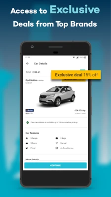 - Exclusive deals and discounts from top car rental brands only available in our app.