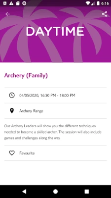 Daytime Activities - when they are on and the location in the HV. Sessions include Aerial Adventure, Archery,Water Activities and much more!