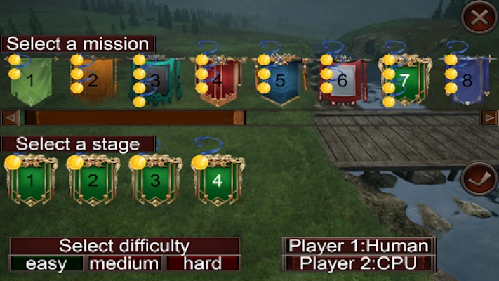 Missions are played on 24 custom built maps and each map will require the player to come up with new battle tactics. Players will march their army across grasslands, advance through the mountains and build bridges to reach their objectives. A successful attack will on be complete when a player executes flanking maneuvers, surrounds the enemy and lay siege to enemy castles. Meanwhile, the defenders will counter attack, and call in the cavalry in an attempt to defend their castles. No battle plan is complete without considering the best way to use the troops of their army. Each troop will have its own weapon (ex. sword, ax, halberd) which deals a unique amount of damage depending on the opponents troops armor. Cavalry and mounted archers have a greater movement, while archers and mounted archers are able to shoot their bows at their enemy from a distance.