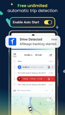 • Truly free automatic tracking: Unlike other leading mileage trackers, we offer unlimited automatic trip detection at no cost