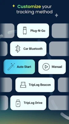 • Free unlimited automatic tracking: TripLog starts tracking when you start driving, and stops when you stop
