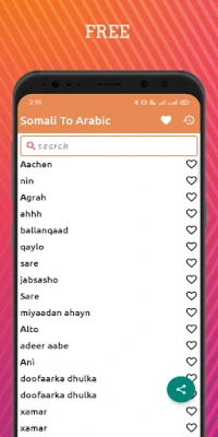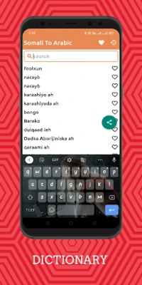 You can have a most loved rundown list in the Somali-Arabic dictionary moreover. The Arabic words will turn into your top choice during the utilization of the application, you can keep them as your favorite ones. In the Right hand of each word, a straightforward heart-molded symbol is there. Tap on the heart symbol and see it becoming red in shading more like Insta.