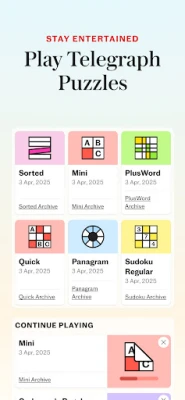 • Take a break and immerse yourself in a puzzle or two. Whether you’re a sudoku fan or enjoy the daily crossword puzzle, you’re sure to find something to suit your tastes in the Telegraph magazine.